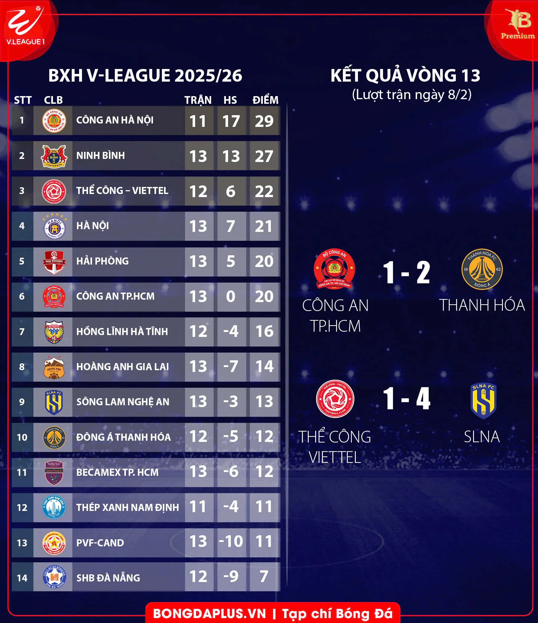 Trận cầu vòng 13 V.League 2025/26 tại sân Hàng Đẫy đã chứng kiến một kết quả gây sửng sốt khi Sông Lam Nghệ An (SLNA) có màn trình diễn hủy diệt để đánh bại chủ nhà Thể Công Viettel với tỷ số cách biệt 4-1.